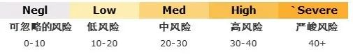 Sustainalytics的评估体系从ESG风险角度出发,根据企业ESG表现进行风险评估。按照企业ESG风险得分划分风险等级。其中,0-10分为可忽略的风险水平,10-20分为低风险水平,20-30分为中等风险水平,30-40分为高风险水平,40分以上为严峻风险水平。