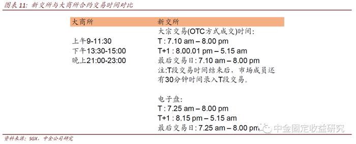 新交所期货1手是100吨,以美元结算,交易时间更长,22个小时;大商所1手是100吨,人民币结算,交易时间6个小时。其他细节参照图11。
