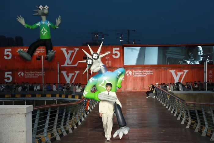 大部分奢侈品品牌在迎合中国消费者的口味这件事上会走更安全的路线。比如路易威登(Louis Vuitton)于8月6日在上海举办的2021春夏男装大秀上,对应中国传统文化中对“龙”形象的重视和喜爱,路易威登在走秀开场“入乡随俗”地舞起了龙,甚至让品牌全球代言人吴亦凡在压轴出场时身背3米高龙形充气玩偶完成走秀。尽管也有一些声音指出龙的形象与中国人传统认知存在差异,但路易威登采用的是一种明显经过设计的卡通龙形象,而没有刻意扭曲的痕迹。