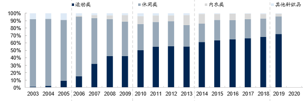 但要说申洲国际发展历程中最大的转折点,应该还是2002年,从那时起公司将重点从休闲服饰转向运动服饰,2019年公司227亿营业收入里,已经有163亿来自于运动服饰,占比超过70%。