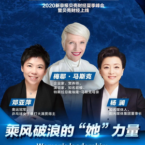 第二个,在这样的危机当中,我们也发现数字经济转型被加速了,很多女性在直播带货、社群营销方面又找到了新的发展机会。我想借用梅耶女士的一句话,“你应该有冒险精神,走出自己的舒适圈,同时还是要更加审慎”。要去研究这个市场,不要盲从,因为任何行业的成功都不是那么简单。