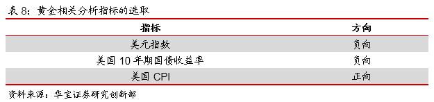 考虑到黄金属于国际定价资产,而美国经济与美元状况在国际经济与货币环境中居于主导地位。鉴于此,我们选取美元指数,美国利率(美国10年期国债收益率),美国通胀(美国CPI同比增速)作为代表,构建中长期黄金择时框架。