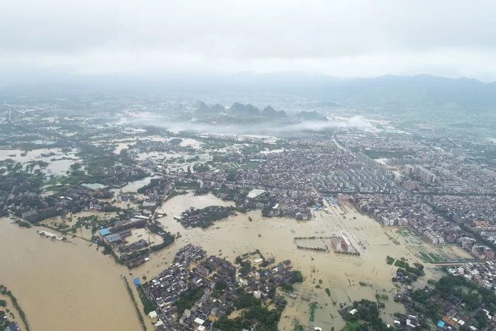 ▲ 2019年8月,浙江台州遭受台风“利奇马”袭击,城市变成一片汪洋。图片/人民视觉