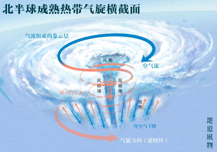 ▲ 台风结构示意图。内容绘图/刘震宇,制图/Paprika