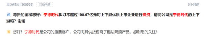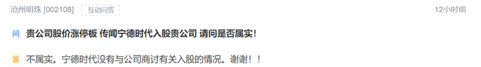 “宁德时代入股了没”,也成为了近两日互动平台上投资者最关心的热点话题之一。