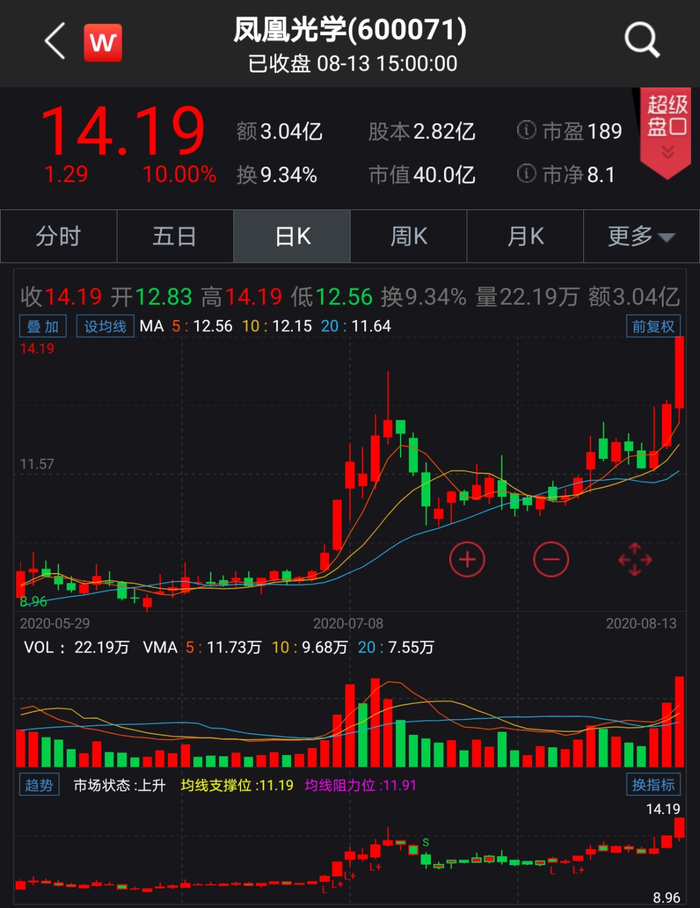 8月13日晚,凤凰光学发布澄清公告,公司股票于8月11日、8月12日、8月13日连续三个交易日内收盘价格涨幅偏离值累计超过20%。