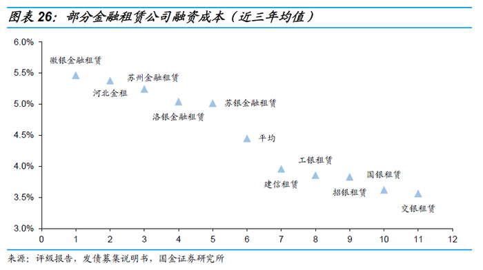 综合而言,在融资成本上,具有大型商业银行股东背景的银行系金融租赁公司更具有优势。
