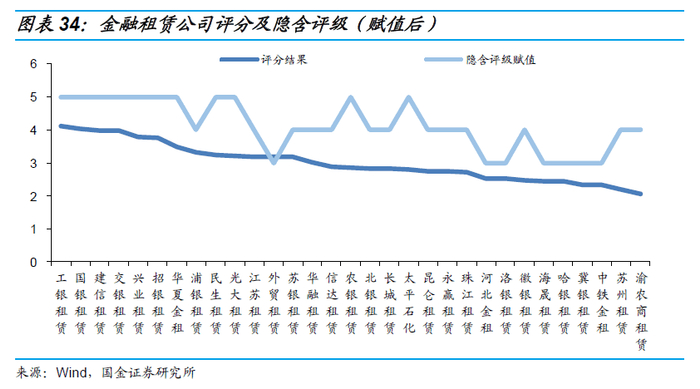 我们对金融租赁公司进行赋值打分,得到的结果如下: