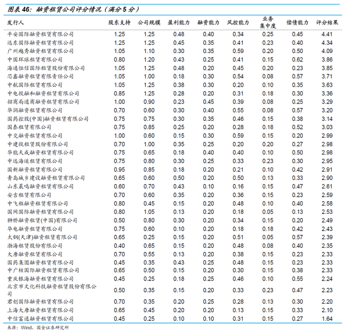 我们对融资租赁公司进行赋值打分,得到的结果如下: