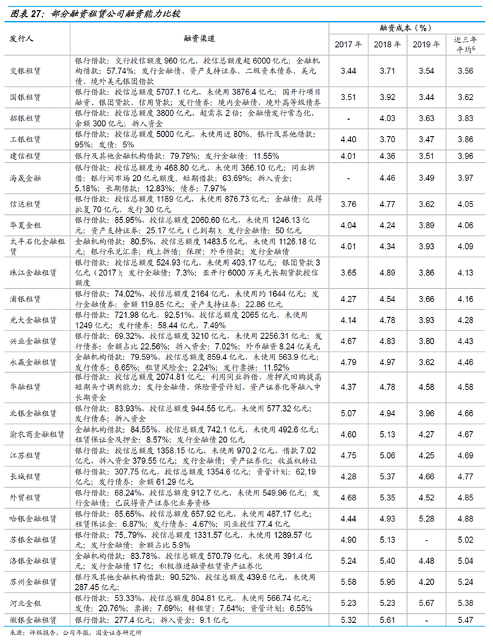 风险提示: 1)关注融资租赁监管政策的变化、行业变化对相关主体信用资质的不利影响;2)租赁公司信息披露不完全,口径不一致等指标数据问题。