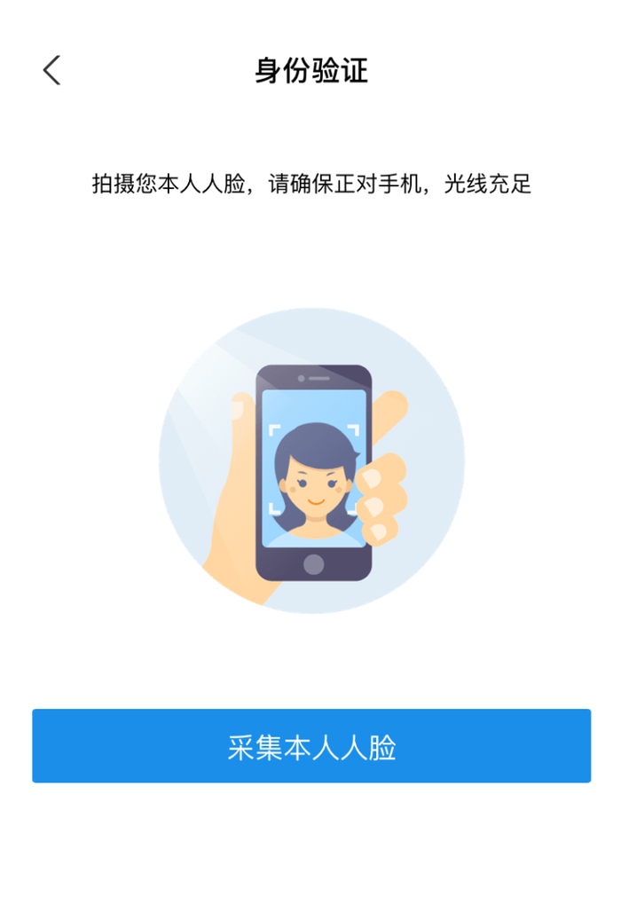 申请人本人通过人脸识别进行实人认证,认证通过后可继续后续办理。