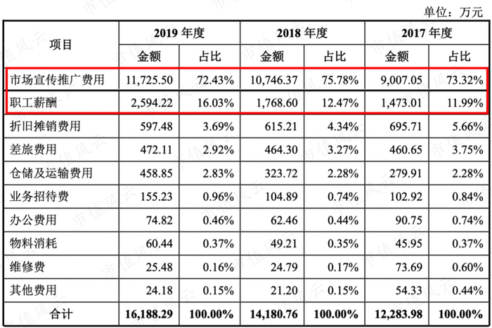 (2017年-2019年销售费用明细)