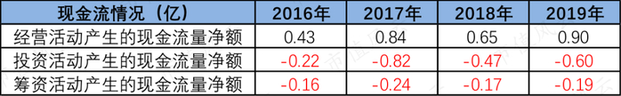 (2)投资活动因为资本支出和购买理财,现金流净额为负,其中2017年-2019年分别买了5900万、5720万、8420万理财产品;