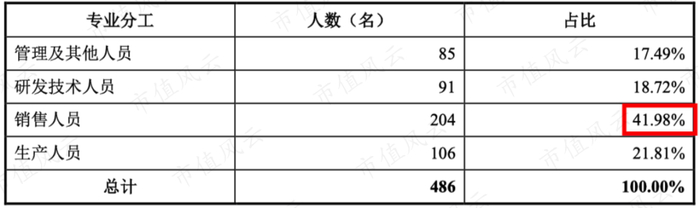 由于直销为主,销售人员也是占比最高的。