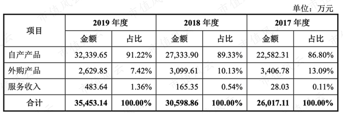 2017年-2019年安必平营业收入为2.60亿、3.06亿、3.55亿,其中收入结构为: