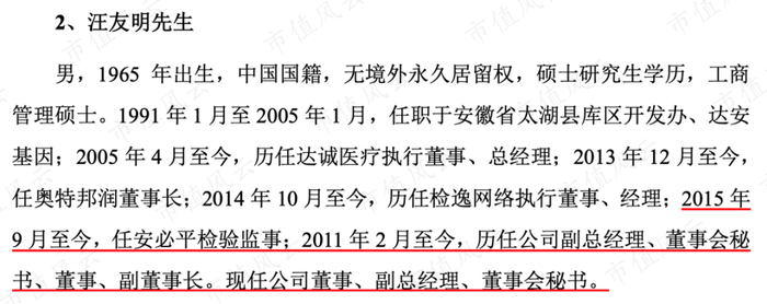 安必平的董事/副总经理/董秘汪友明,也是达安基因董事长何蕴韶的妹夫。