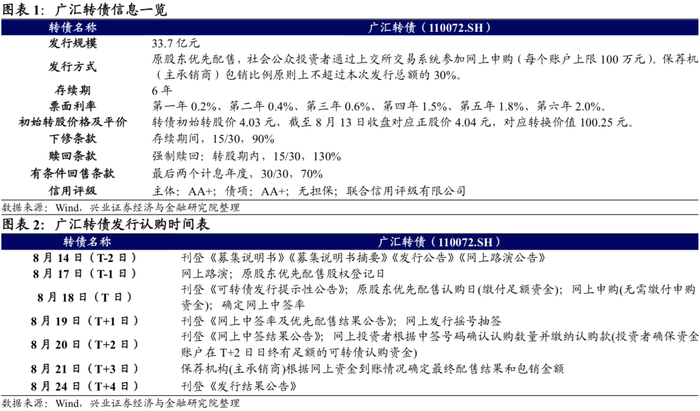 广汇转债(发行规模33.7亿元,评级AA+)的下修条款较为宽松,债底保护尚可,预计目前平价下其上市首日获得的转股溢价率在14%-18%区间内,价格114-118元。在配售75%假设下广汇转债留给市场的规模为8.425亿元,估算中签率0.01%左右。打新参与没有异议。广汇汽车估值处于历史偏低位置,往后看业绩回暖的可能性较大,7月以来传统车行业关注度逐渐提升,建议投资者对于其转债积极关注。