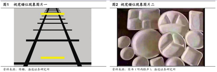 即便市场是完全可知的,不同的人在处理同一信息的时候反应也不同。我们看看下面两张图,左边这个图,我相信大家第一感观是,离我们近的这条黄线更短,实际上两条黄线一样长,错觉源于背景图的干扰。我们再来看右边这个图,如果你看到其中一个盘子正面朝上,那所有盘子都是正面朝上。反之,如果你看到一个盘子反面朝上,那所有盘子都是反面朝上。眼见为实,我们以为看到了,就知道真相了,其实未必。视觉系统传输到认知系统时,信息可能被扭曲,即便完全传输,由于每个人的认知体系不同,对同一个信息的理解也会不同。经济学中理性人的假设只是理论情景,现实中人是有限理性的。我们经常看到一个政策出来,有的人解读为利好,有的人解读为利空。所以说市场很复杂,市场包含的信息很多,人对信息的理解和分析、得到的结论也不一样。