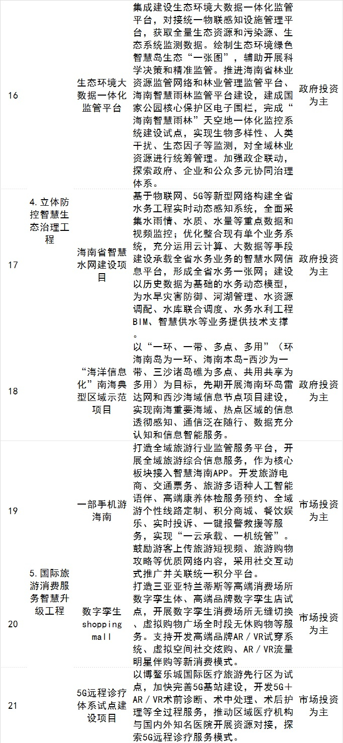 方案同时公布了智慧海南重大工程项目清单,具体如下:
