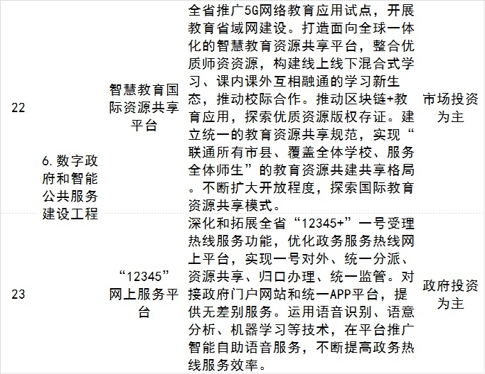 2、数字政府和智能公共服务建设工程。涉及开展国际智慧医疗+康养示范、探索多元化智慧教育服务新模式等。