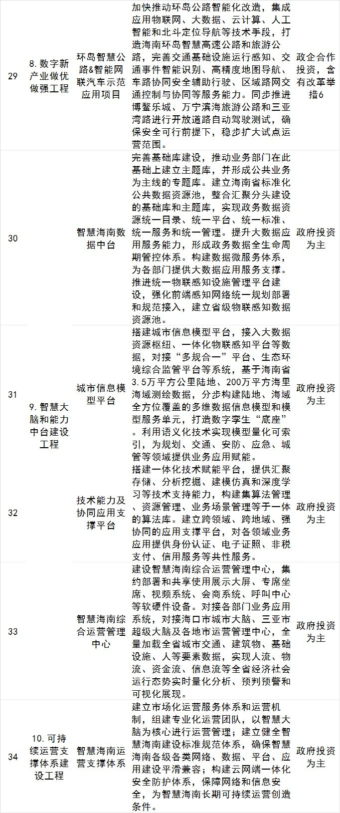 方案同时公布了智慧海南重大工程项目清单,具体如下: