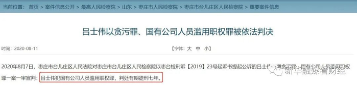 8月7日,枣庄市台儿庄区人民法院对枣庄市台儿庄区人民检察院提起公诉的吕士伟涉嫌贪污罪、国有公司人员滥用职权罪一案一审宣判:枣庄银行原党委书记、董事长吕士伟犯国有公司人员滥用职权罪,判处有期徒刑七年。