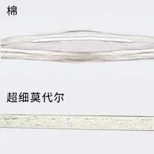 这种纤维超纤细,通过显微镜拍下长绒棉和蚕丝蛋白纤维的对照图片,很明显看到后者更加纤细。