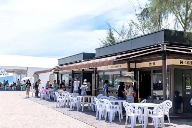 沙滩入口左边坐落着一排干净的洗手间、换洗间和储物柜,便利店与流动餐车在其右,正中间则是数百平米的游客接待服务大厅。