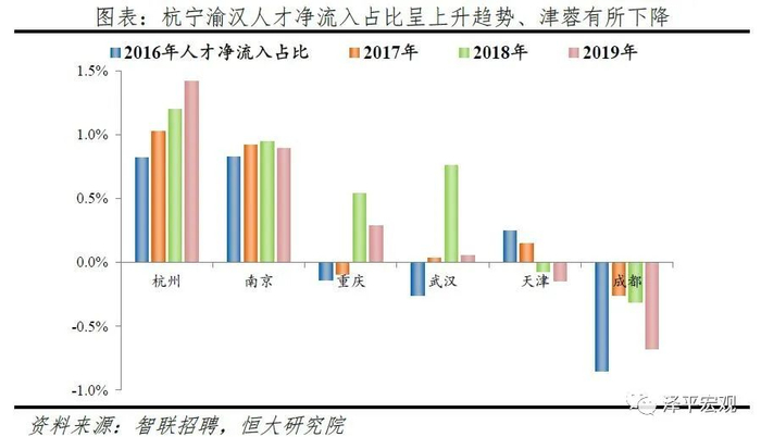 3 重点城市:深广杭宁渝汉人才净流入占比逐渐上升