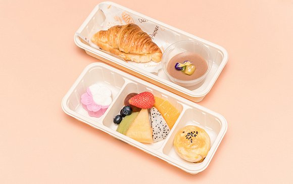 具体而言,包括招牌酱油鸡饭、蜜汁叉烧饭、招牌肥牛饭、鲍汁海鲜饭、番茄土豆烧牛肉饭、辣汁白卤水鸡饭6款餐食;红豆双皮奶、杨枝甘露奶油、小青瓜、香橙牛奶果冻双叠、柠檬香草奶油、咖啡奶茶双叠6款甜品;以及北京烤鸭卷、芝士包、半干番茄橄榄包、大豆蛋白肉松卷、一口麻辣面、香草梅干菜包6款迷你点心。