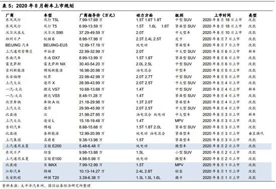 8月上市车型梳理