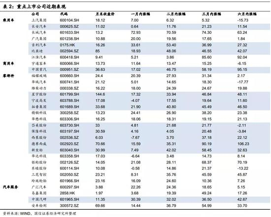 2)行业集中度提升,具备核心资产的赛道龙头:基于此主线下的推荐标的有长安汽车、广汽集团、华域汽车、长城汽车等。