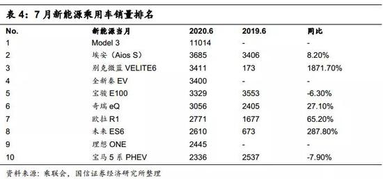 根据乘联会数据,7月新能源车型销量中,Model 3(11014辆)、埃安(3685辆)、别克微蓝(3411辆)销量占据前三甲。