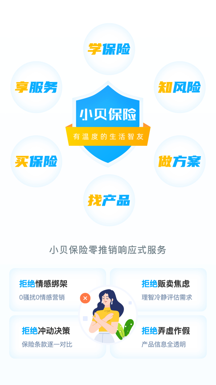 小贝保险集成智能风险测评、保障方案定制、智能报价、健康分析、投保协助、理赔协助、智能保险问答等核心功能,为消费者提供一站式保险决策服务。