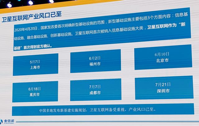 2020年4月,卫星互联网首次纳入“新基建”范围,意味着卫星互联网建设已上升为国家战略。卫星互联网属于信息基础设施的通信网络基础设施范畴内,信息基础设施主要是指基于新一代信息技术演化生成的基础设施。同时,在国家发改委将“卫星互联网”纳入新基建后,各地政府积极响应,制定行动实施方案。