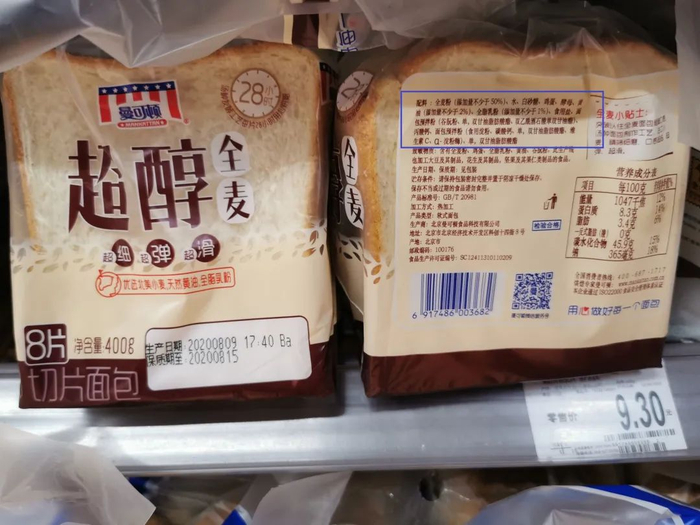 “全麦面包用全麦粉制作而成,包含了麦子的麸皮、胚芽及胚乳部分,但市面上卖的一些所谓全麦面包配料表第一位不是全麦粉,而是小麦粉。”上海市市场监管局提示,“真正的全麦面包没有小麦粉,必须是100%全麦,且配料表中第一位是全麦粉,其次是水和其他。”