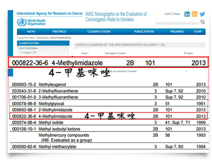 但是在焦糖色素的生产工艺中,会产生一种副产物——4-甲基咪唑,这个物质被世界卫生组织旗下的癌症研究所认定为2B类致癌物。