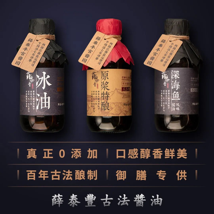 薛泰丰酱油创始于清朝的道光十三年,并且拿到了当时政府颁发的官酱园牌匾。在咸丰年间更是直接被送进了御膳房,成为皇家所用的高级酱油。