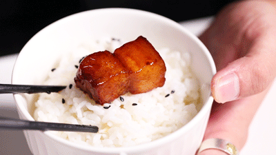 再用薛泰丰冰油提色,加了冰油后的红烧肉色泽红润,看一眼便忍不住要留下口水了。