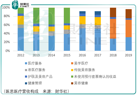 香港医思医疗(02138-HK)于2016年3月联交所上市交易,其起初的营收构成分别是医疗服务、准医疗服务、传统美容服务以及护肤及美容产品。