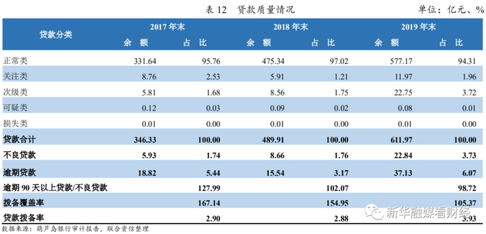 日前,联合资信发布的葫芦岛银行评级报告指出,2019年葫芦岛银行不良贷款、关注类贷款和逾期贷款规模均呈现较快增长态势,信贷资产质量面临的下行压力逐步显现,贷款拨备水平已不足。
