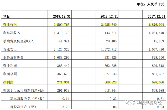 去年,葫芦岛银行的经营状况同样不乐观,营业收入虽然实现增长,但净利润却下滑近6成。财报显示,2019年该行总收入达到25.10亿元,同比增长12.27%,实现净利润2.72亿元,较2018年的6.70亿元同比降幅近6成。