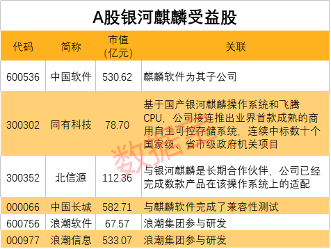 证券时报·梳理发现,A股部分上市公司与麒麟软件有股权或业务合作关系。