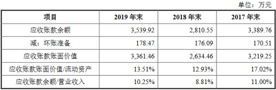 2013年至2019年,步科股份应收账款余额分别为1119.76 万元、1127.38万元、1767.30万元、2116.94万元、3389.76万元、2810.55万元和3539.22万元,占营业收入的比例分别为5.89%、5.31%、8.59%、8.95%、11.00%、8.81%和10.25%。