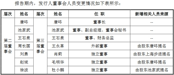 2018年4月,步科股份董事会、监事会换届,原董事周长国、独立董事刘勇、赵斌、徐波不再担任公司董事,王永革、肖莉、毛明华、杜小鹏担任公司第三届董事会董事;赵有强不再担任公司监事,黄敏担任公司第三届监事会监事。