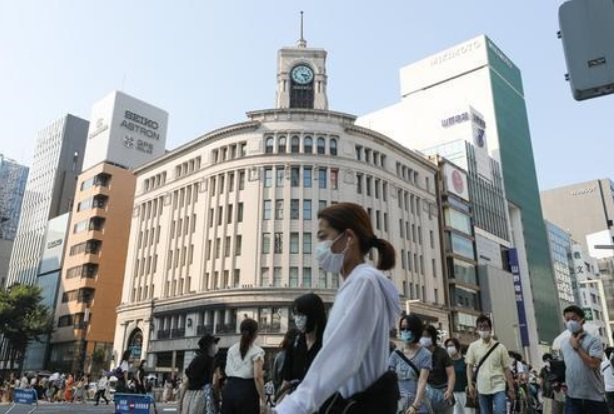 8月15日,在日本东京,人们戴口罩出行。图源:新华社