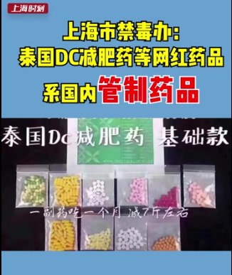 昨天,上海市禁毒委员会披露,以泰国DC减肥药为代表的一批网红药品中,含有国家管制精神药品成分,如安非拉酮、芬特明、地西泮等,上述成分我国均已在2005年列入了《麻醉药品及精神药品品种目录》。