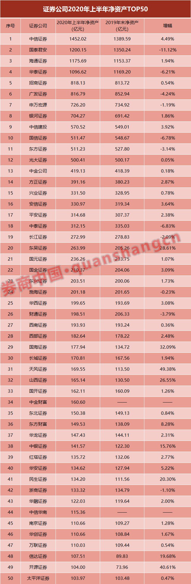 大洗牌:133家券商上半年25项指标排名:华泰降至第八
