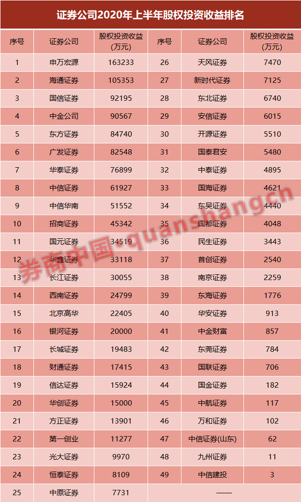 从统计口径来看,该指标具有一定随机性,因此行业排名并不固定。不过,此次协会列出的49家公司股权投资收益全部为正值,与上年同期的5家公司投资亏损相比,已有明显进步。
