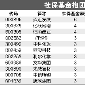 社保基金重仓股中,从前十大流通股东名单中社保基金家数来看,13只个股二季度获3家及以上的社保基金抱团持仓。